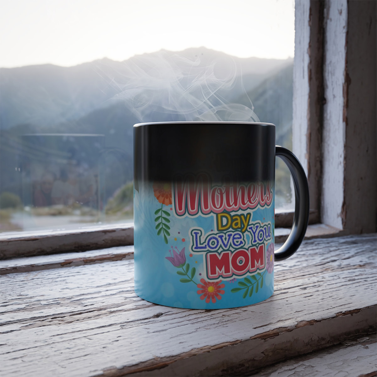 Gorgeous Mothers day personalized Mug.? The mug is available in 2 tone, standard ceramic and a color morphing variant which is heat reactive. This nicely designed mug is a? super popular gifts for Moms for Birthdays and Mothers Day. The color morphing mug is heat-reactive and reveals your designs once the mug gets warm. and will go back to its original black outside and white inside when it cools down. The mugs boast a C-shaped handle which helps keep a sturdy grip. They come in one size ? 11oz (0.33l) ? plenty for that big morning cup of coffee.