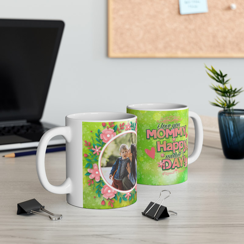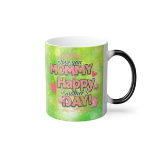 I love you Mommy Mothers Day Mug. Upload your preferred photo using the upload option below. The mug has 2 tone, standard ceramic and color morphing variants. The color morphing mug is heat-reactive and reveals your designs once the mug gets warm. It returns to the black design when the mug cools down.