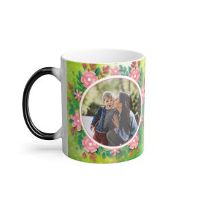 Gorgeous Mothers day personalized Mug.? The mug is available in 2 tone, standard ceramic and a color morphing variant which is heat reactive. This nicely designed mug is a? super popular gifts for Moms for Birthdays and Mothers Day. The color morphing mug is heat-reactive and reveals your designs once the mug gets warm. and will go back to its original black outside and white inside when it cools down. The mugs boast a C-shaped handle which helps keep a sturdy grip. They come in one size ? 11oz (0.33l) ? plenty for that big morning cup of coffee.