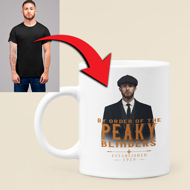 Turn your photo into a Peaky Blinders inspired masterpiece. We?ll design a personalized vintage-style mug featuring your likeness in the iconic 1920s aesthetic. A quality clear photograph is essential