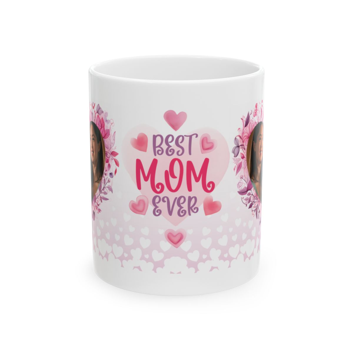 Beautiful pink Best Mom ever personalized mug with floral Love heart design, perfect for showing appreciation to the best mom in the world. This mug is ideal for Mother’s Day, birthdays, or simply to make any day special for a loving mother.