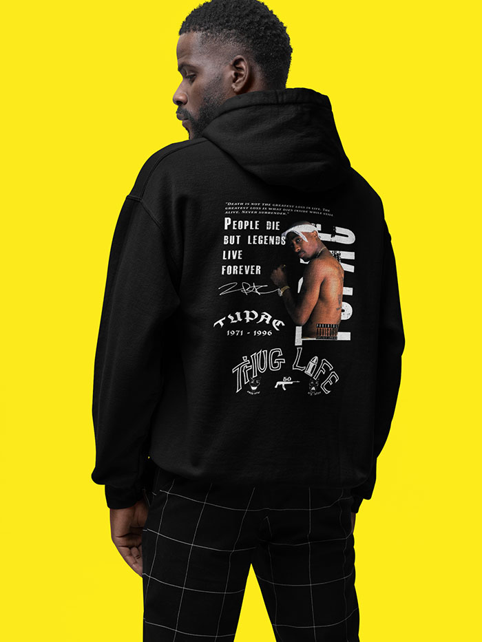 Exclusive design featuring Tupac Shakur — also known as 2Pac and Makaveli — one of the most iconic rappers of all time. This design incorporates some of his most famous quotes and tattoo artwork into a premium print.