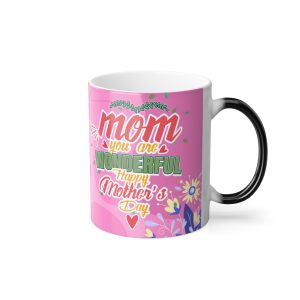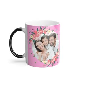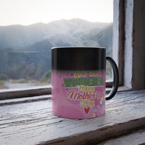 Gorgeous Mothers day personalized Mug.? The mug is available in 2 tone, standard ceramic and a color morphing variant which is heat reactive. This nicely designed mug is a? super popular gifts for Moms for Birthdays and Mothers Day. The color morphing mug is heat-reactive and reveals your designs once the mug gets warm. and will go back to its original black outside and white inside when it cools down. The mugs boast a C-shaped handle which helps keep a sturdy grip. They come in one size ? 11oz (0.33l) ? plenty for that big morning cup of coffee.
